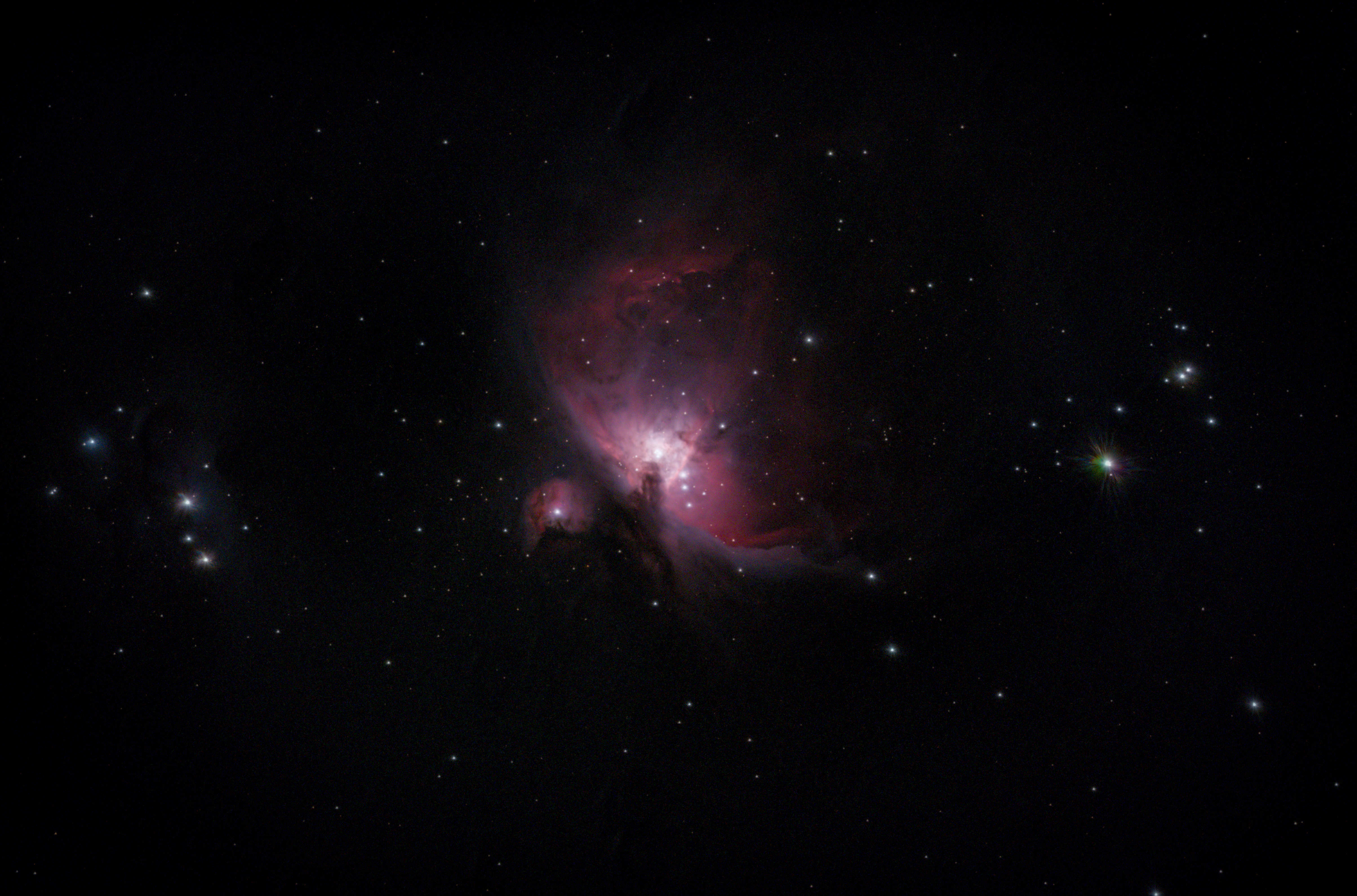 The brightest diffuse nebula in the sky and the closest major star-forming region to Earth at about 1,344 light-years. The Trapezium Cluster at its heart — four hot young stars — illuminates the surrounding gas and dust across a span of 24 light-years. M42 is a rewarding target at any focal length and one most astrophotographers return to repeatedly. The enormous dynamic range from the blazing core to the faint outer wisps makes it a great test of HDR blending technique.